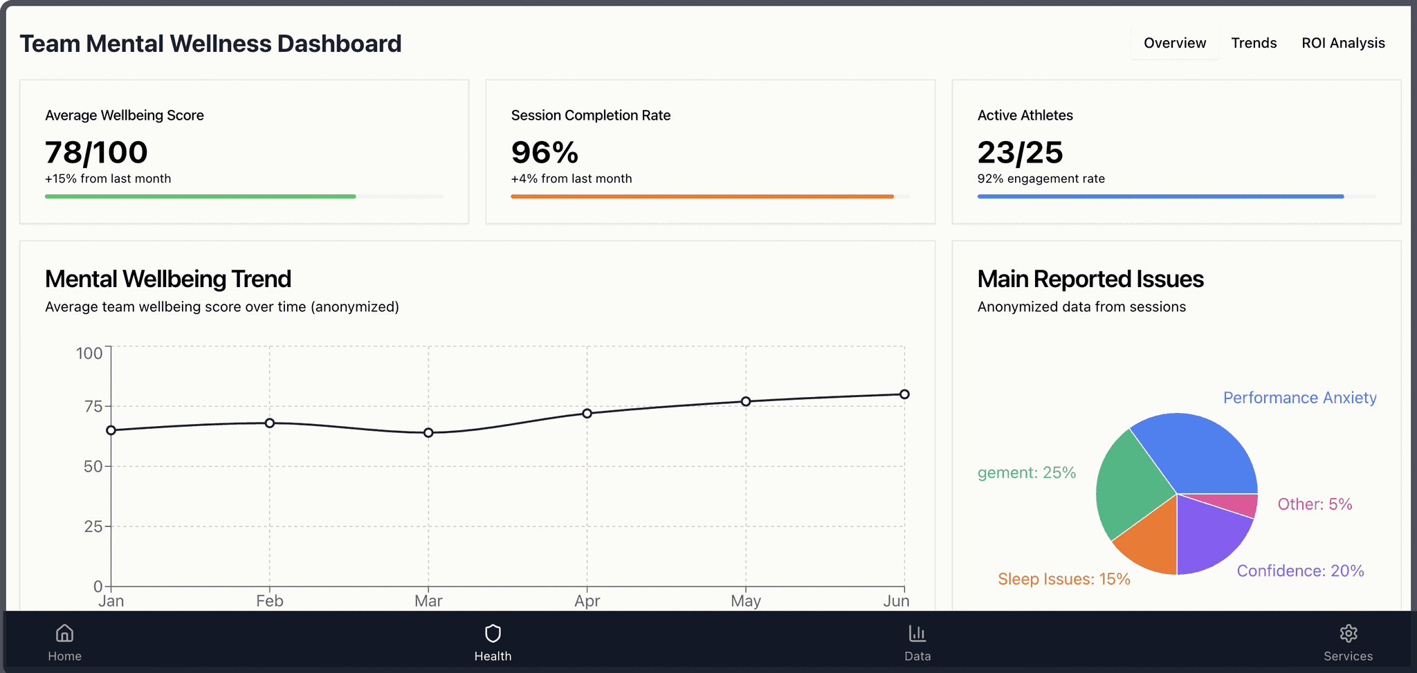 Get comprehensive analytics on team mental wellness trends, session effectiveness, and ROI tracking. Make data-driven decisions about your mental health investments with metrics that were never available before.